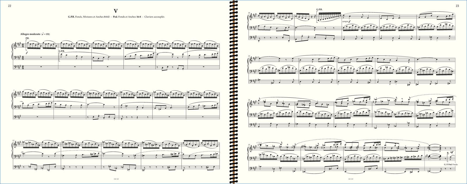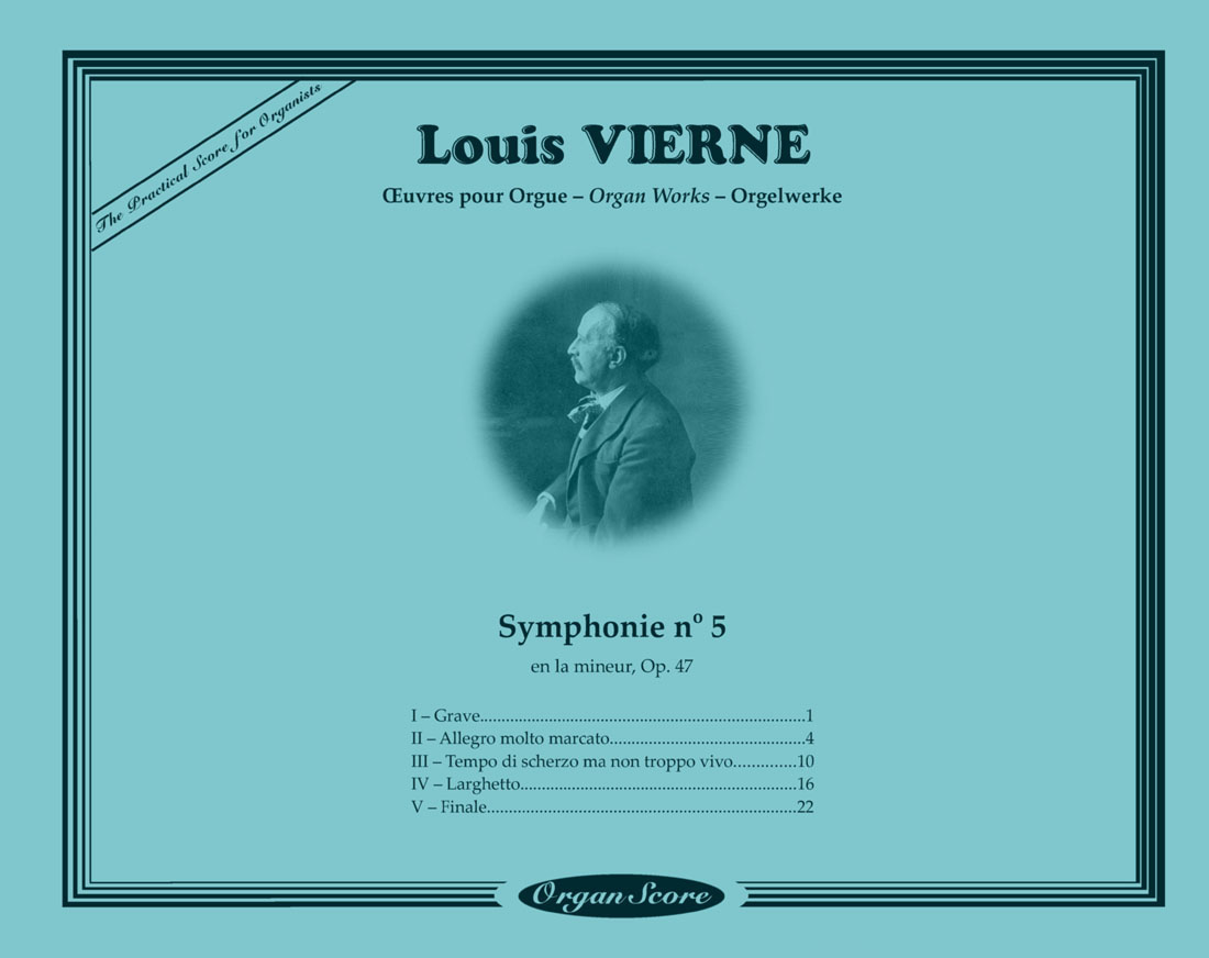 The OrganScore edition was prepared from the original publication (Louis Vierne, 5e Symphonie pour Grand Orgue, Éditions Durand, 1925), on which corrections were necessary. Most of these corrections were identified by Vierne’s students or friends and compiled by Rollin Smith (Louis Vierne, Organist of Notre-Dame Cathedral, Pendragon Press, Hillsdale, N.Y., 1999).